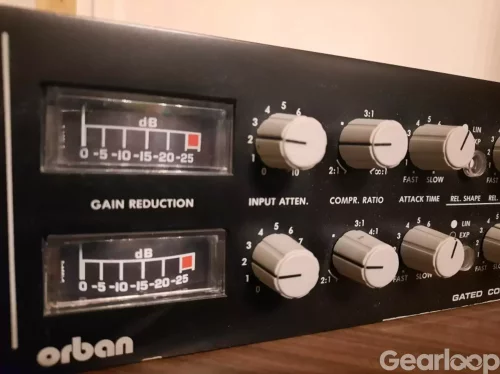 Orban 424a, 2 Channel Compressor Limiter Deesser (sjukt bra deesser) Strömsladden är väldigt kort men har själv haft den i rack och då har det aldrig varit ett problem. Funkar som den ska. Pris inkl frakt.