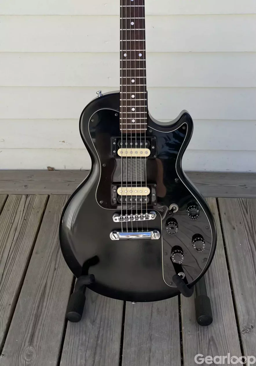 En riktig rocker som förtjänar att spelas på! Billig vintage med alla originaldelar. Jag har bytt stämskruvarna till Grover, men originalen följer med. Inga nya skruvhål gjorda . Färgen på halsen är bortslipad, och den är helt underbar att spela på med låg stränghöjd. Jättefina band. Vikt 4,2 kg. Originalcase följer med. Kan skickas